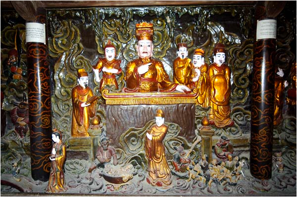 Ở các tòa bái đường, thượng điện và hậu điện có đặt 52 pho tượng cổ như: Thập bát La hán, Hộ Pháp... cùng khánh đá (dài 1,46m, cao 0,66m), chuông đồng (cao 1,28m)...