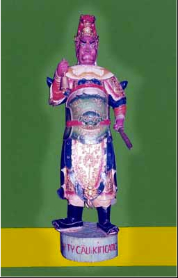 Ở cổng tam quan có pho tượng Quan Âm Thị Kính. Sách Điển tích văn học - một trăm truyện hay dông tây kim cổ (Mai Thục, Đỗ Đức Hiểu, NXB. Giáo dục, Hà Nội, 1996) đã giới thiệu Thị Kính nguyên kiếp trước là đàn ông, tu hành sắp thành Phật, nhưng Thích Ca muốn thử lòng, cho đầu thai xuống làm một cô gái nghèo, xinh đẹp, nết na, có chồng là Thiện Sĩ. Một hôm chồng ngủ, Thị Kính đưa dao cắt sợi râu mọc ngược ở cằm, nhưng Thiện Sĩ thức dậy tưởng vợ giết mình nên đuổi nàng về nhà cha mẹ. Bị tiếng oan, Thị Kính giả trai đi tu ở chùa Vân Tự với tên Kính Tâm. Nỗi oan khác lại đến. Thị Mầu, một cô gái quê xinh đẹp, dan díu với một anh lực điền. Làng bắt vạ, Thị Mầu đổ tội cho Kính Tâm và bỏ con cho Kính Tâm nuôi dưỡng. Sau ba năm nhẫn nhục nuôi cháu bé, Kính Tâm lâm bệnh mất. Đức Phật xét Kính Tâm đã tu hành đắc đạo, siêu thăng làm Phật Bà Quan Âm (Quan Âm Thị Kính).