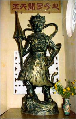 Chùa có tôn thờ tượng Bồ tát Di Lặc thếp vàng và tượng Tứ Thiên Vương: Nam Phương Tăng Trưởng Thiên Vương, Đông Phương Trì Quốc Thiên Vương, Bắc Phương Đa Văn Thiên Vương và Tây Phương Quảng Mục Thiên Vương. Mỗi tượng cao 2,6m.